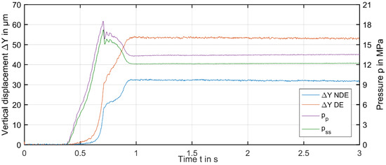 - Hagemann, T.; Kraft, C.; Pfeiffer, P.; Schwarze, H. Erhöhung der Betriebssicherheit von Rotierenden Maschinen deren Hydrodynamische Radial- und Axiallager Zusätzlich mit einer Hydrostatischen Laufhilfe Ausgestattet sind; Technical Report 1135; FVV: Frankfurt am Main, Germany, August 2017. [Google Scholar]