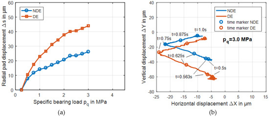 - Hagemann, T.; Kukla, S.; Schwarze, H. Measurement and prediction of the static operating conditions of a large turbine tilting-pad bearing under high circumferential speeds and heavy loads. In Proceedings of the 58th ASME Turbo Expo, San Antonio, TX, USA, 3–7 June 2013. [Google Scholar]