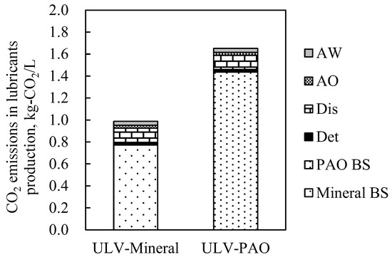 CO2 emissions in the lubricants’ production of ULV-Mineral and ULV-PAO.