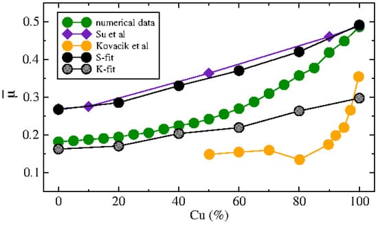 However, it can be noted that, for 100% copper, the friction value of the Su et al. results and the numerical results are identical. Thus, to try to match the experimental results obtained by Su et al. [
