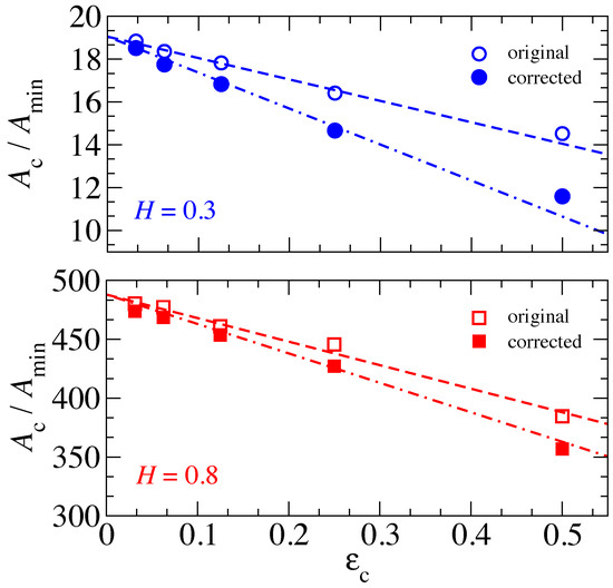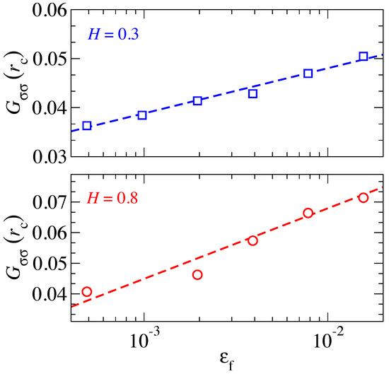 This difference in scaling of can be rationalized as follows: For , the dominant part of the elastic energy needed to conform two surfaces is dominated by the short-wavelength deformations, while the opposite holds for . Consequently, a substrate bears many patches of size on a scale , since it is not energetically expensive to form contact at distant asperities. In contrast, a substrate only has at best a few dominant mesoscale asperities in contact over an area of order . Due to this qualitative difference, we expect that not only the functional form of the laws differ between Hurst exponents above and below , but also the functional form of the low-pressure dependence, even if the currently available data on by itself is too meager to provide strong support for this latter claim.