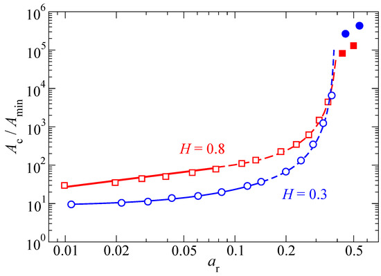 A is too large to obey the power-law scaling. Later, the same group considered larger-scale simulations as well as finer resolution and also included plasticity, which led them to revise their estimate to