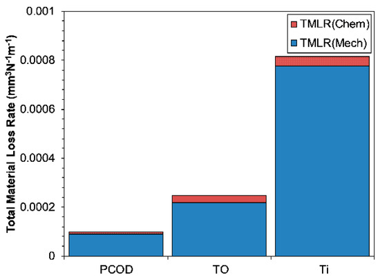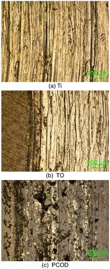 - Both treated samples show significant material loss reductions when compared with untreated Ti. When compared with untreated Ti, the TO-Ti reduced material loss by 3.2 times and the PCOD-Ti reduced wear by 7.6 times.