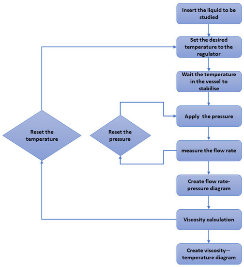 The experimental procedure for the viscosity measurement of engine oils is described step by step in Figure 2. The dynamic viscosity (n) is defined as: