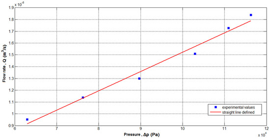 When a set of measurements were received for the flow rate, the values were plotted to the corresponding pressures. To make sure that the flow is definitely a Poiseuille flow, the experimental values must follow a straight-line equation.