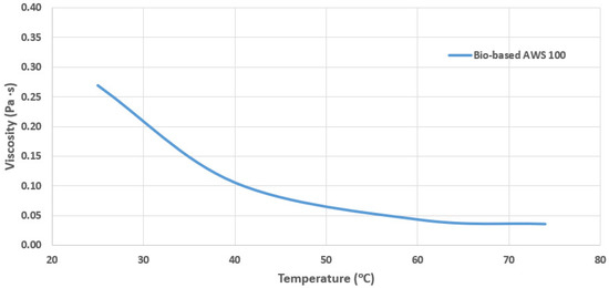 The variation of the measured viscosity for the SAE 30, the environmentally based and the SAE 10W40 oils are presented in Figure 7, Figure 8 and Figure 9. Regarding the engine oil SAE 30 and the biolubricant AWS-100, the viscosity curves are illustrated only for the fresh conditions as a function of increasing temperature, while for the SAE 10W40 oil, the aged conditions are additionally provided.
