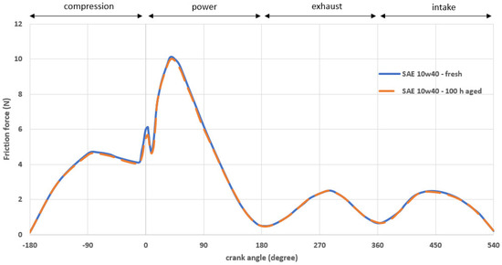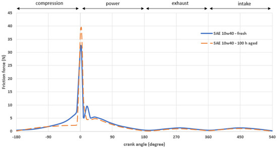 As a result, current engine lubricants used in internal combustion engines (ICE) are responsible for reducing engine friction losses and contact wear. Therefore, the impact of engine oil viscosity and aging is of prime interest with regard to the motion of passenger cars [20]. Several methods were presented and discussed in the open literature to study the variation of lubricant viscosity and oil degradation over time. For instance, a novel lab-based artificial aging method for the evaluation of engine oils in biofueled automotives was studied by Besser et al. [21]. They found that oil formulations have a dominant effect on typical oil parameters, such as oxidation and aging procedure. Sikora and Miszczak [22] in their report included experimental results to investigate the change of viscosity and lubricity of engine oil used in two harbor tugs, called HEROS’, in Caterpillar CAT3516DITA engines at similar working hours. The used oil was a product of the Fuchs Oil Corporation, which meets the specifications of SAE 15W-40. They measured the viscosity on the Haake Mars III rheometer in the range of temperatures between 10 to 120 °C. These authors indicated that engine oil aging has a crucial impact on the lubrication and wear performance of journal bearings. Additionally, Dam et al. [23] investigated how the engine oil aging history in an engine affects its emission levels. A 12.7 L heavy-duty diesel engine was tested in an engine dynamometer test cell over 40 h using an engine oil with type of SAE 15W-40. They found that oil aging has a limited effect on gaseous and mass emissions and metal contents of exhaust.