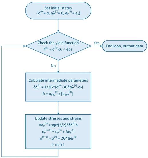 - Simo, J.C.; Taylor, R.L. Consistent tangent operators for rate-independent elastoplasticity. Comput. Methods Appl. Mech. Eng. 1985, 48, 101–118. [Google Scholar] [CrossRef]