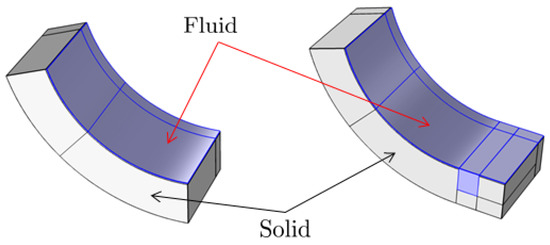 where p is the hydrodynamic pressure and A is the surface area of the fluid domain. Note that, in Equation (13), no contribution from viscous forces has been included. Moreover, to deform the mesh inside the boundaries with prescribed displacement, the Yeoh smoothing method was used with a stiffening factor of 100 (see, e.g., [24]).