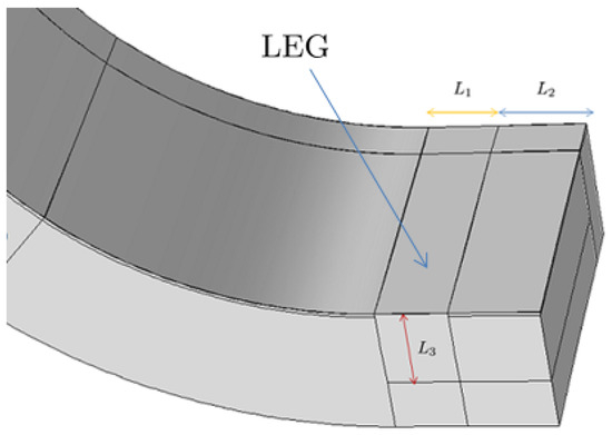Close up on the LEG portion of Pad B with the characteristic dimensions . Note that only half of the axial length is modeled due to symmetry.
