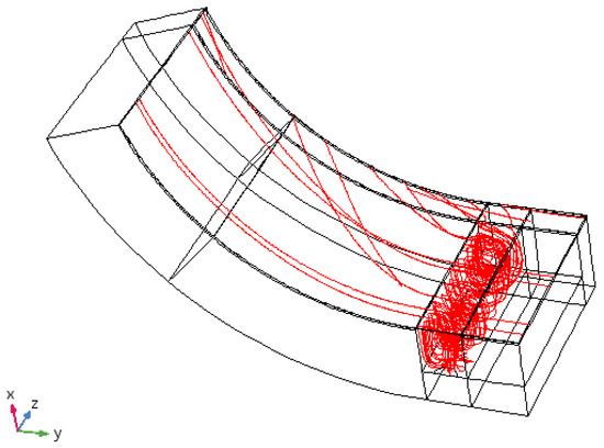As mentioned earlier, the fluid–shaft surface was prescribed a normal displacement of . The fluid domain outlets and leading edge inlet were constrained to deform with a zero normal displacement.