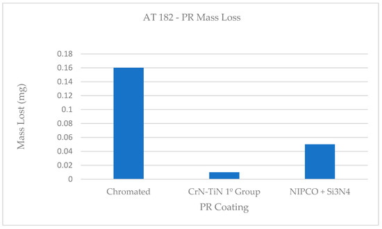 The chromium plated PR has the highest COF amongst the tested PR coatings at 0.158. Moreover, it also has the greatest loss of mass, 0.16 mg, of all three PRs tested. In this screening, the PVD multi-layer TiN-Ti-CrN-CrN and the electroless nickel-phosphorus coating with dispersed silicon nitride (Si3N4) particles coatings displayed a strong potential for wear reduction under scuffing conditions [14].
