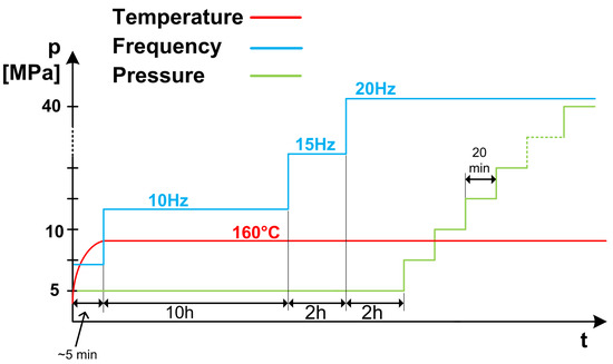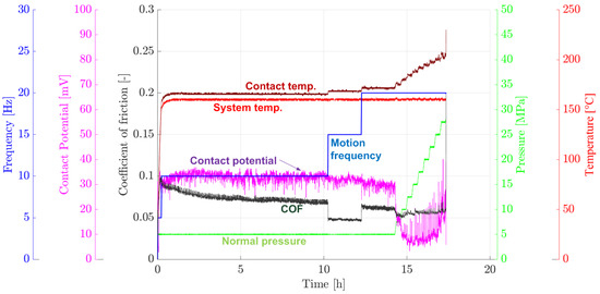 | Contact pressure | 17 MPa peak according to [25] | 5 MPa constant for running-in |