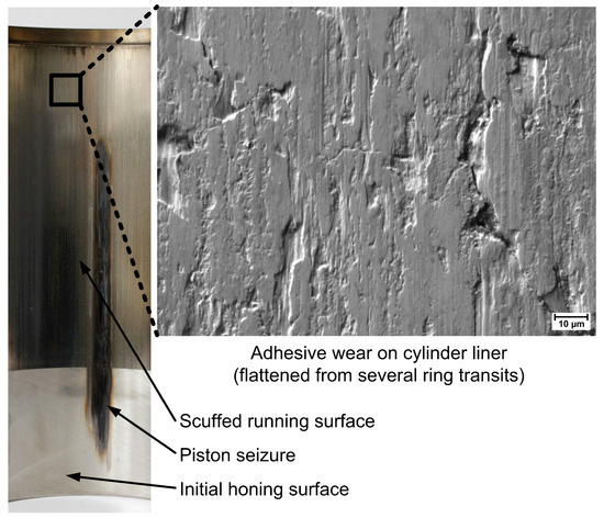 - Liu, K.; Liu, X.J.; Gui, C.L. Scuffing failure analysis and experimental simulation of piston ring–cylinder liner. Tribol. Lett. 1998, 5, 309–312. [Google Scholar] [CrossRef]