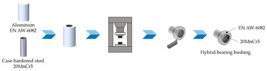 - Behrens, B.-A.; Bouguecha, A.; Frischkorn, C.; Huskic, A.; Chugreeva, A. Process routes for die forging of hybrid bevel gears and bearing bushings. In Proceedings of the AIP Conference Proceedings 1896, Dublin, Ireland, 16 October 2017. [Google Scholar]