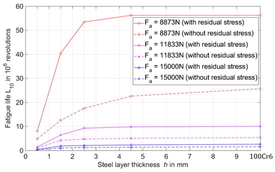 - Pabst, A.; Tremmel, S.; Wartzack, S. Investigation of Residual Compressive Stresses in Rolling Bearing Components and their Impact on the Rating Life. In Proceedings of the STLE Annual Meeting & Exhibition, Lake Buena Vista, FL, USA, 18–24 May 2014. [Google Scholar]