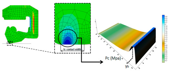where yb represents the location of the maximum dry contact pressure (results of structural analysis with the commercial simulation software Abaqus, as presented in references [6,11]), as illustrated in Figure 5.