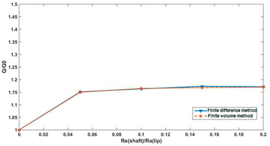 Figure 10 shows that, on the one hand, the reverse pumping rate increases by considering higher values of the grooves depth—higher than the shaft roughness (experimentally measured, which is in the order of 90 nm according to the results obtained by El Gadari et al. [11].