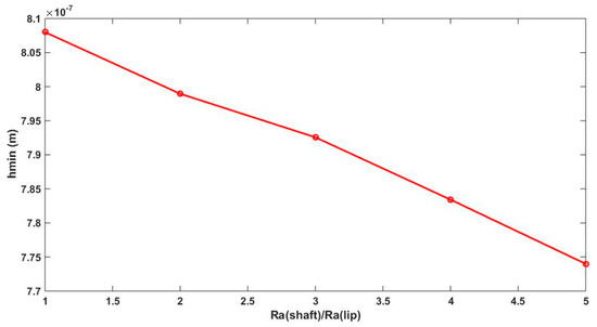 We note from Figure 11 that when the minimum film thickness is higher than zero it means that this separation is sufficient to make asperity interaction negligible, and the condition of hydrodynamic lubrication is verified; the values are in the order of micron, which justifies the nomination of thin film lubrication. Finally, the graph shows that hmin reduces by increasing the shaft arithmetic roughness.