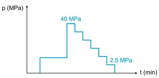 Schematic of the load-decreasing tribological tests performed to determine the static and dynamic friction coefficients of both PA6 polymers against steel plates (surface contact pressure p in MPa as a function of time t in minutes).