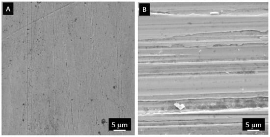 Though all the steel specimens were of the same initial composition, chemically different secondary structures were formed depending on the grade of the counterpart alloy. Secondary structures include all of the chemical elements in the tribosystem, which is a consequence of its self-organization. Generally, SSs are thin metal-polymer films generated as a result of the high carbon and oxygen content. The presence of a metal-polymer film on the steel surface was clearly demonstrated by investigation of an SEM image (Figure 3A) in which the film was torn off and rolled into a bundle.