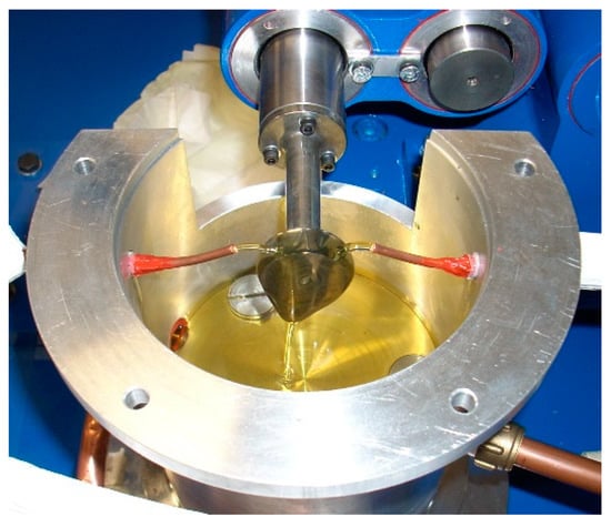 The lubricant is directly supplied to the contact zone by an oil system. The temperature is regulated using a thermostatic bath. Figure 2 shows the cam used for obtaining the results presented in this work mounted on the camshaft; the upper part of the measurement unit with the follower is removed in this picture to make the cam visible.