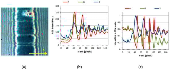 (a) Interferogram; (b) corresponding RGB and (c) HSV components on x-axis.