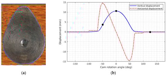 (a) Cam; (b) vertical and horizontal displacement of the contact zone.