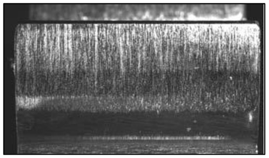 Figure 7 shows the reference of a new flank of a test pinion type “FZG-A”. The typical grinding pattern from the Maag criss-cross finishing process can be seen. One flank of the pinion used in the testing is shown in Figure 8. The surface of the flank shows clear scoring over the full face-width of 20 mm.