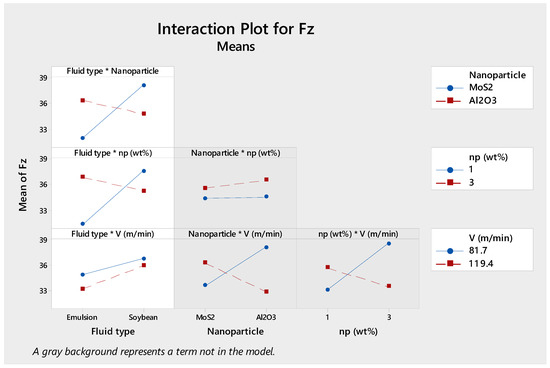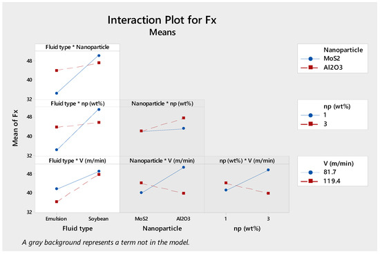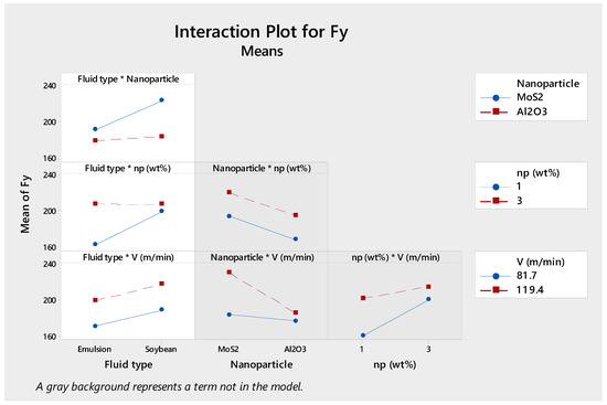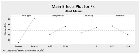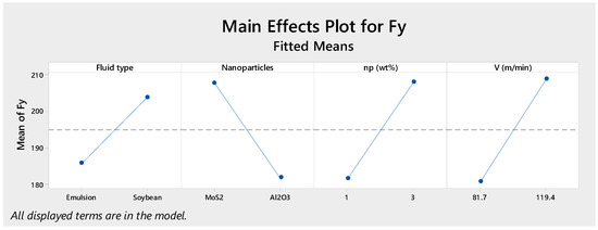 The empirical regression equations (Equations (2)–(5)) are formulated, and ANOVA analysis is carried out at a confidence level of 95% (i.e., 5% significance level). Most of possibility values (p-value) are smaller than the significance level α = 0.05, from which the investigated variables have a significant effect on the objective functions of Fx, Fy, Fz and Ra. In addition, the possibility values of linear models are much smaller than the significance level α = 0.05 and the regression models judged by the coefficients of determination (R2) are suitable.