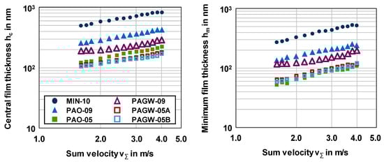 | Relative Film Thickness | vΣ = 1 m/s | vΣ = 8 m/s | vΣ = 16 m/s | |||