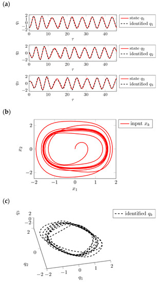 Experimental study 3: Input and identified states and using , polynomials up to p = 1 and .