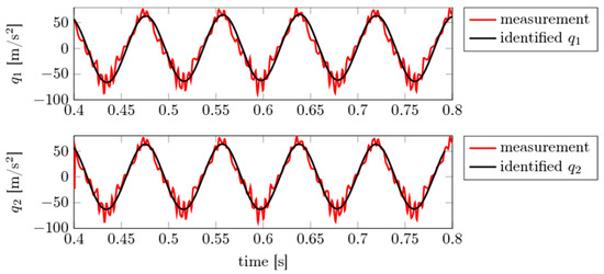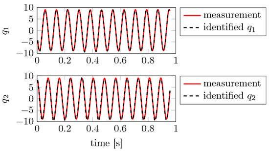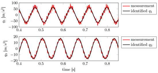 Experimental study 2: Measured and identified states and using , polynomials up to p = 1 and . The signals were upsampled to .
