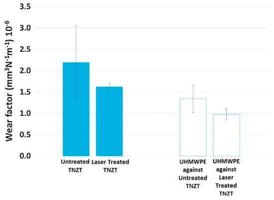 - Majumdar, P.; Singh, S.; Chakraborty, M. Wear response of heat-treated Ti-13Zr-13Nb alloy in dry condition and simulated body fluid. Wear 2008, 264, 1015–1025. [Google Scholar] [CrossRef]