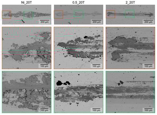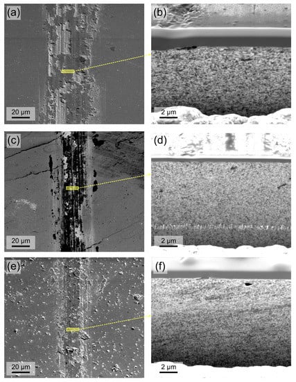 3.3. Microstructure under the Wear Scar