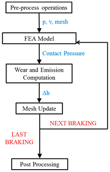 - Riva, G.; Valota, G.; Perricone, G.; Wahlström, J. An FEA approach to simulate disc brake wear and airborne particle emissions. Tribol. Int. 2019, 138, 90–98. [Google Scholar] [CrossRef]