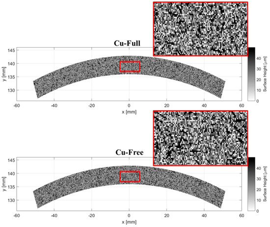 Generated initial pad surface topography FOR Cu-full (above) and Cu-free (below) materials.
