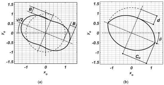 The wave amplitude B represents the degree of deviation from the circular shape, while the angle φ indicates the angular displacement of the outer bearing with respect to the horizontal axis of a fixed frame of reference whose origin is in the bore center (Figure 1a). A null B value corresponds to the CB case.