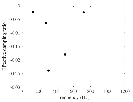 where is the ith eigenvector of Equation (2), is the ith eigenvalue of Equation (2), and j is the imaginary unit. From Equation (3) it can be seen that when a real part of the eigenvalues is larger than zero, the displacement will increase with time, that is, the vibration of the system becomes unstable.