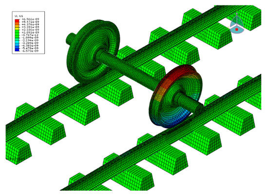 Figure 6 shows a finite element model of a wheelset-track system which consists of a wheelset, two rails, and a series of sleepers. Nowadays, some commercial finite element packages provide the complex eigenvalue analysis ability of friction-induced self-excited vibration. The main procedures for applying ABAQUS to perform complex eigenvalue analysis of the wheelset-track system are given below.