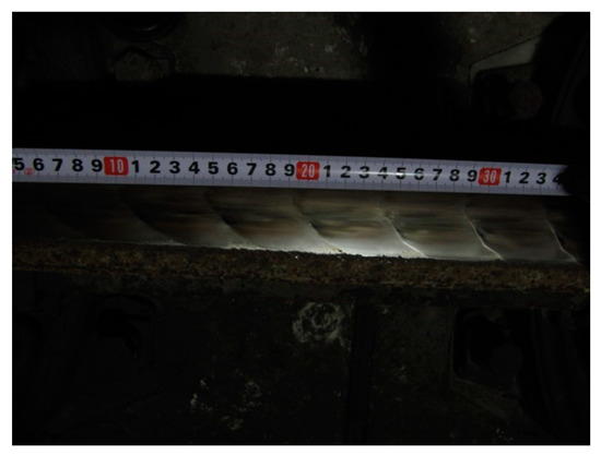 Rail corrugation refers to undulant wear on the running surface of rails as shown in Figure 1 [1,2,3]. When a vehicle passes through on a track with rail corrugation, severe vibration and noise of the wheelset-track system are excited, incurring passengers’ complaints and damaging the vehicle and track components.
