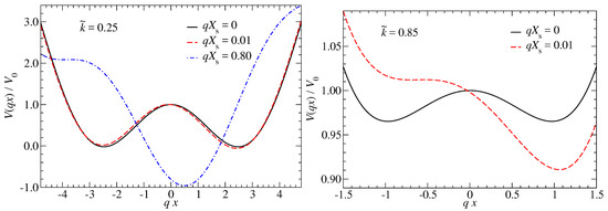 Another parameter affecting the linear damping coefficient is related to a characteristic distance that the spring can move relative to the substrate without significantly changing the energy landscape. It could be defined as the distance from the symmetry point that needs to be overcome to lift the degeneracy of the two minima by more than, say, . Alternatively, it might also be defined by the distance that needs to be slid until one of the two initially degenerate minima becomes unstable. Since the latter is independent of , we explore this distance graphically in Figure 2.
