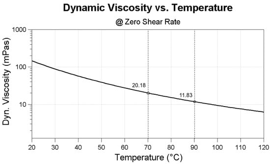 Figure 2 shows the behavior of the lubricant viscosity for the SAE (Society of Automotive Engineers) 5W30 lubricant used in this work when increasing the lubricant temperature. When increasing the temperature from 70