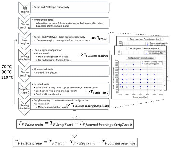 Figure 3) is used after disassembling the full engine to the base engine level. By combination and subtraction of the individual friction losses received at the respective engine media supply temperatures (70