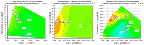 Figure 8 shows the calculated friction reduction/risk potential when increasing the engine media supply temperature of the base engines from 70