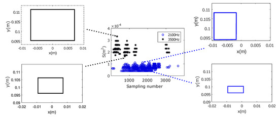 Figure 14 shows results for other positions. Several contact localizations can lead to system instabilities. The majority of effective contact zones for 2100 Hz are located near the leading edge. On the other hand, effective contact zone for 3500 Hz are localized around the center of the nominal contact zone. Figure 15 shows the surface area of effective contact zone for all the unstable cases as well as the effective contact zone corresponding to the biggest and smallest areas for two unstable cases. It is clear that effective contact zones for coupling 1 (3500 Hz) have larger size than those for coupling 2 (2100 Hz).