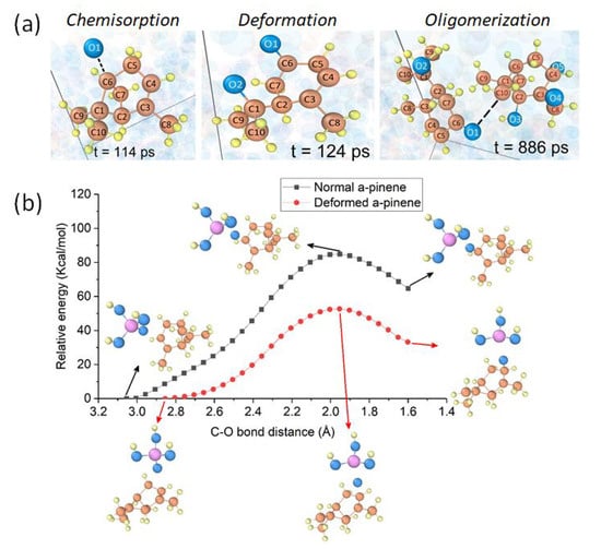 Figure 6a. ReaxFF simulations of simple geometries showed that the distortion step lowers the energy barrier for the oligomerization reaction, as illustrated in