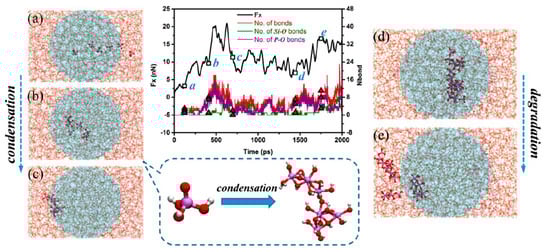91]. This phenomenon has been studied using ReaxFF of a quartz-quartz contact lubricated by two molecular layers of phosphoric acid that showed friction decreased with increasing temperature, and this trend was correlated with shear-driven oligomerization and the formation of water [