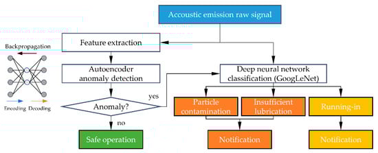 - König, F.; Sous, C.; Ouald Chaib, A.; Jacobs, G. Machine learning based anomaly detection and classification of acoustic emission events for wear monitoring in sliding bearing systems. Tribol. Int. 2021, 155, 106811. [Google Scholar] [CrossRef]