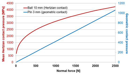Thus, during testing (Figure 3), the lubricant is subjected to an initial mean Hertzian contact pressure P0mean of approximately 1.8 GPa (FN = 200 N) to 3.9 GPa (FN = 2000 N).